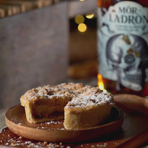 Indulge in something special with these Limited Edition Luxury Welsh Honey Rum Mince Pies! Delight in the rich pastry and sweet Welsh Mor Ladron Honey Rum-infused mincemeat, complemented by the nutty almond frangipane and crisp flaked almond crumble topping. With a two star Great Taste Award, these mince pies are sure to satisfy your cravings and exceed your expectations!