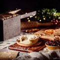 Indulge in a luxury experience like no other with a set of four irreplaceable Luxury Brandy Butter Mince Pies! The sweet pastry cases are filled with decadent layers of almond frangipane, Shirgar brandy butter-infused mincemeat, and topped with a cinnamon crumble.